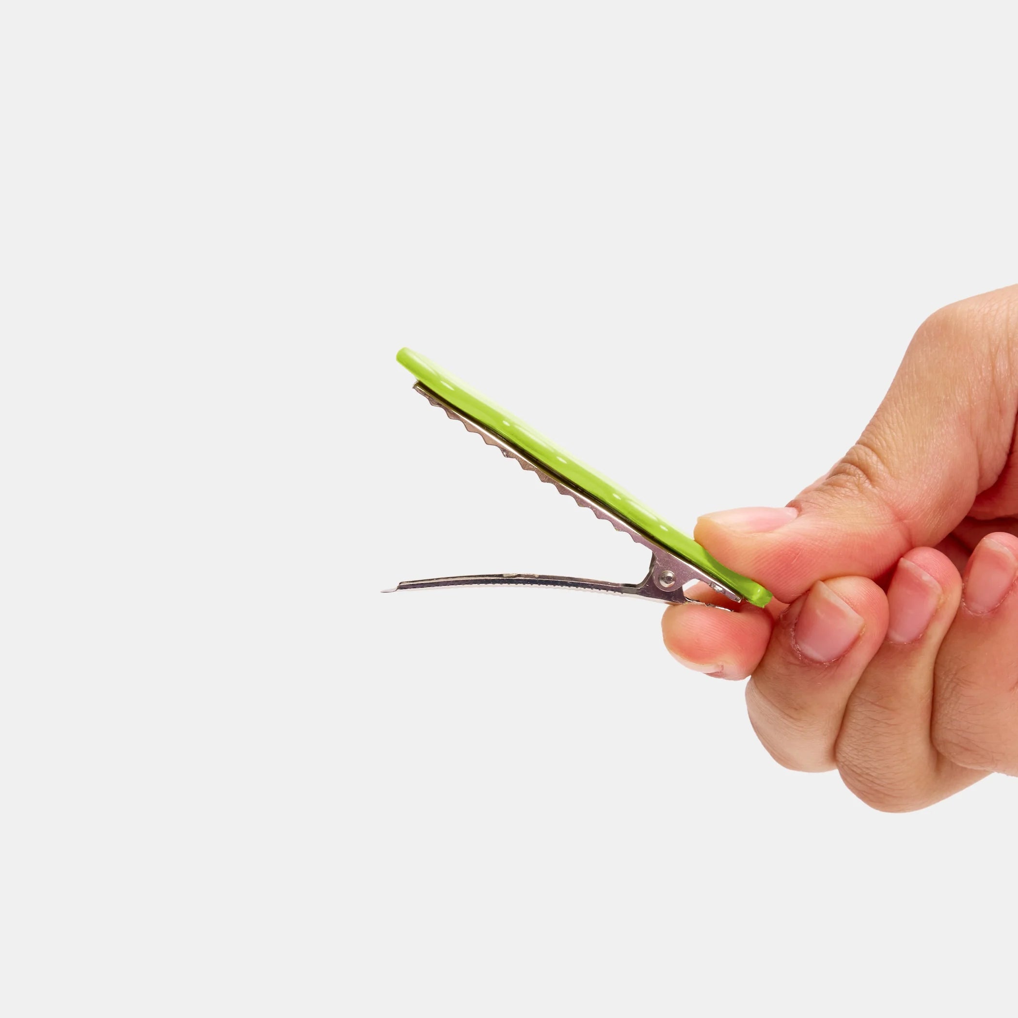 A perfect pair of alligator clips. Small metal teeth provide a strong hold with no snag. Ideal for all hair types and lengths. Great for taming bangs and flyaways.