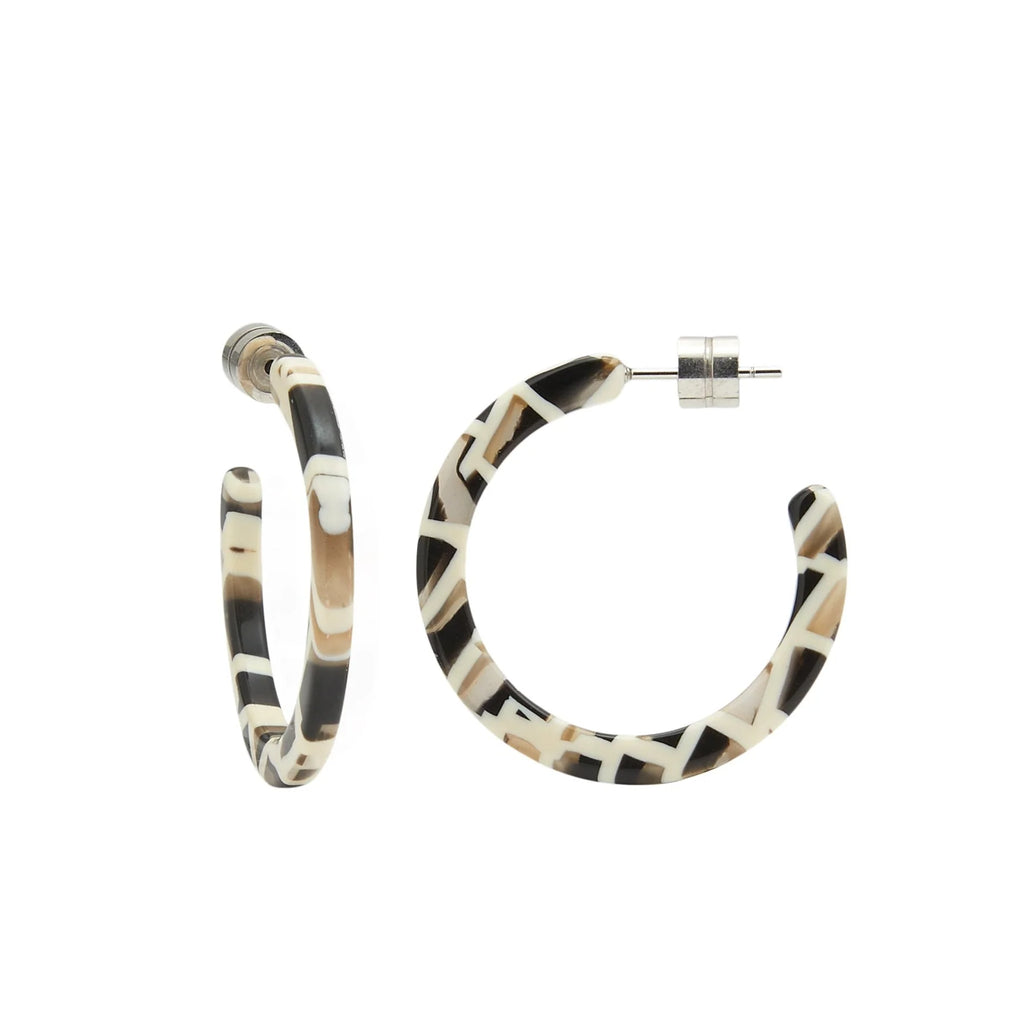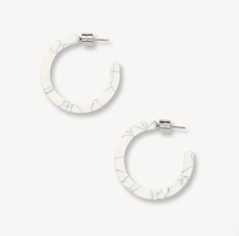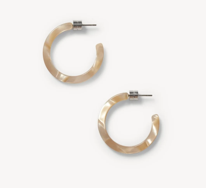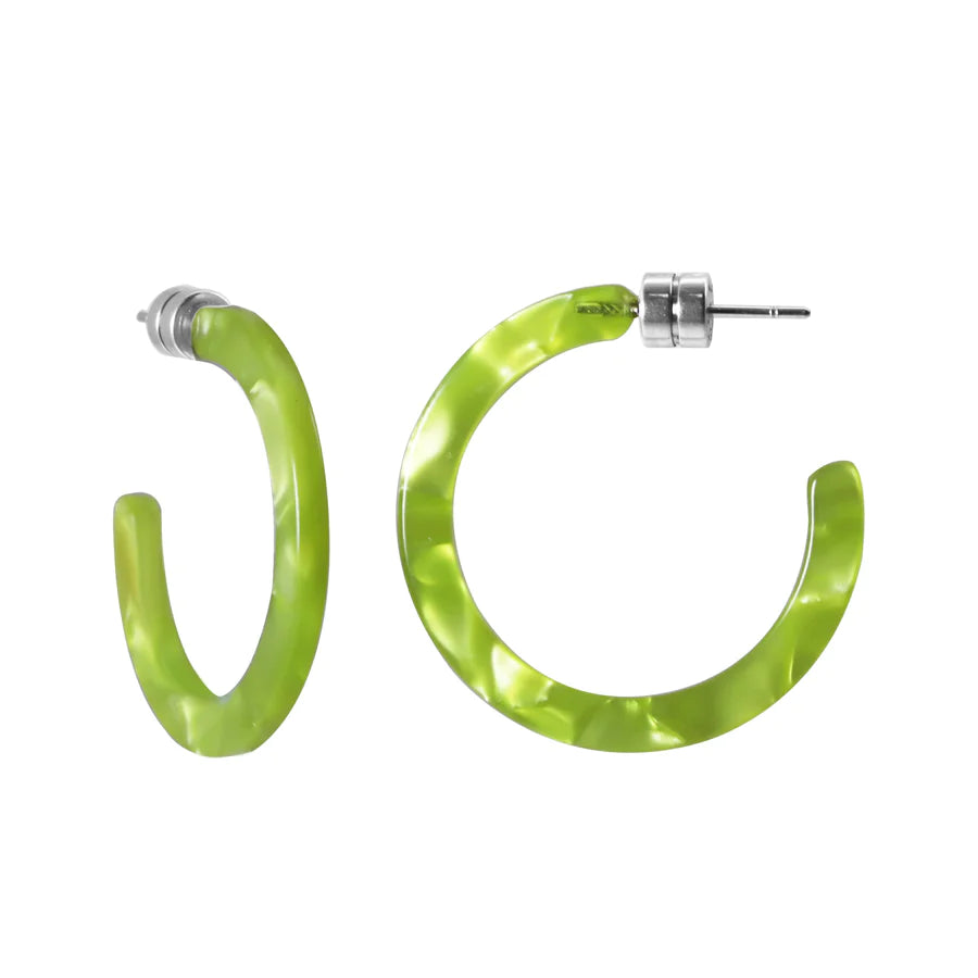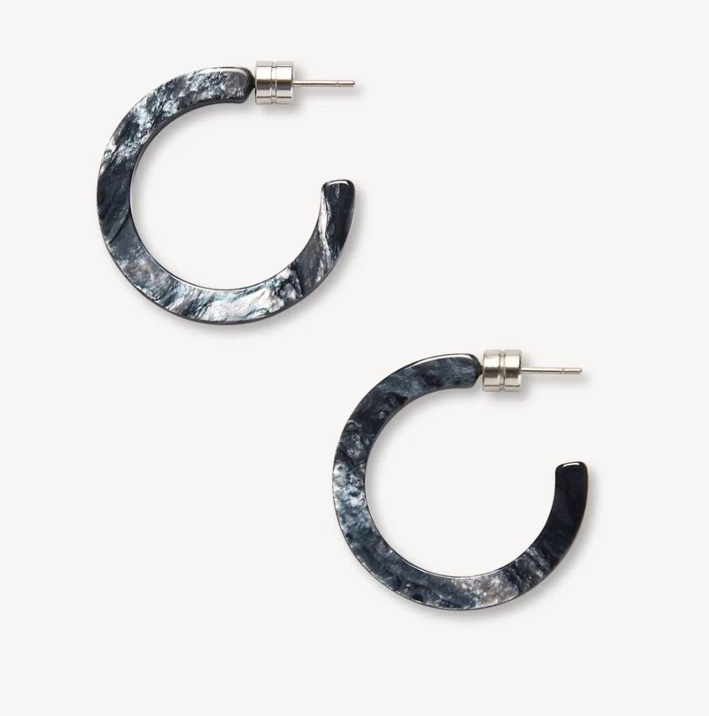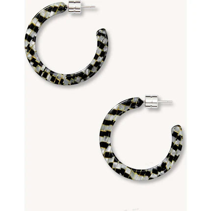 These earrings are sourced from Italian made and imported acetate. Each is fixed with hypoallergenic, stainless steel posts.