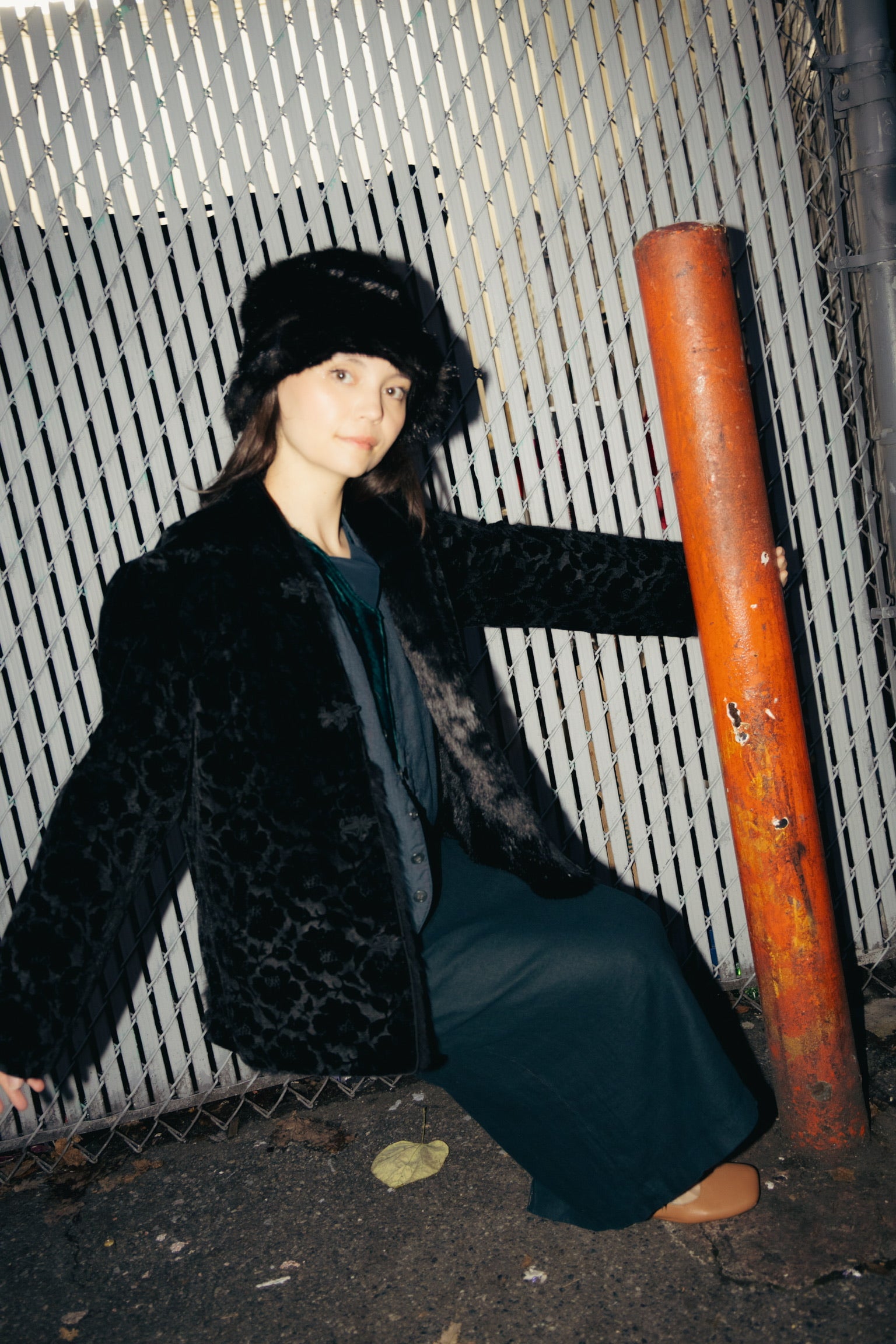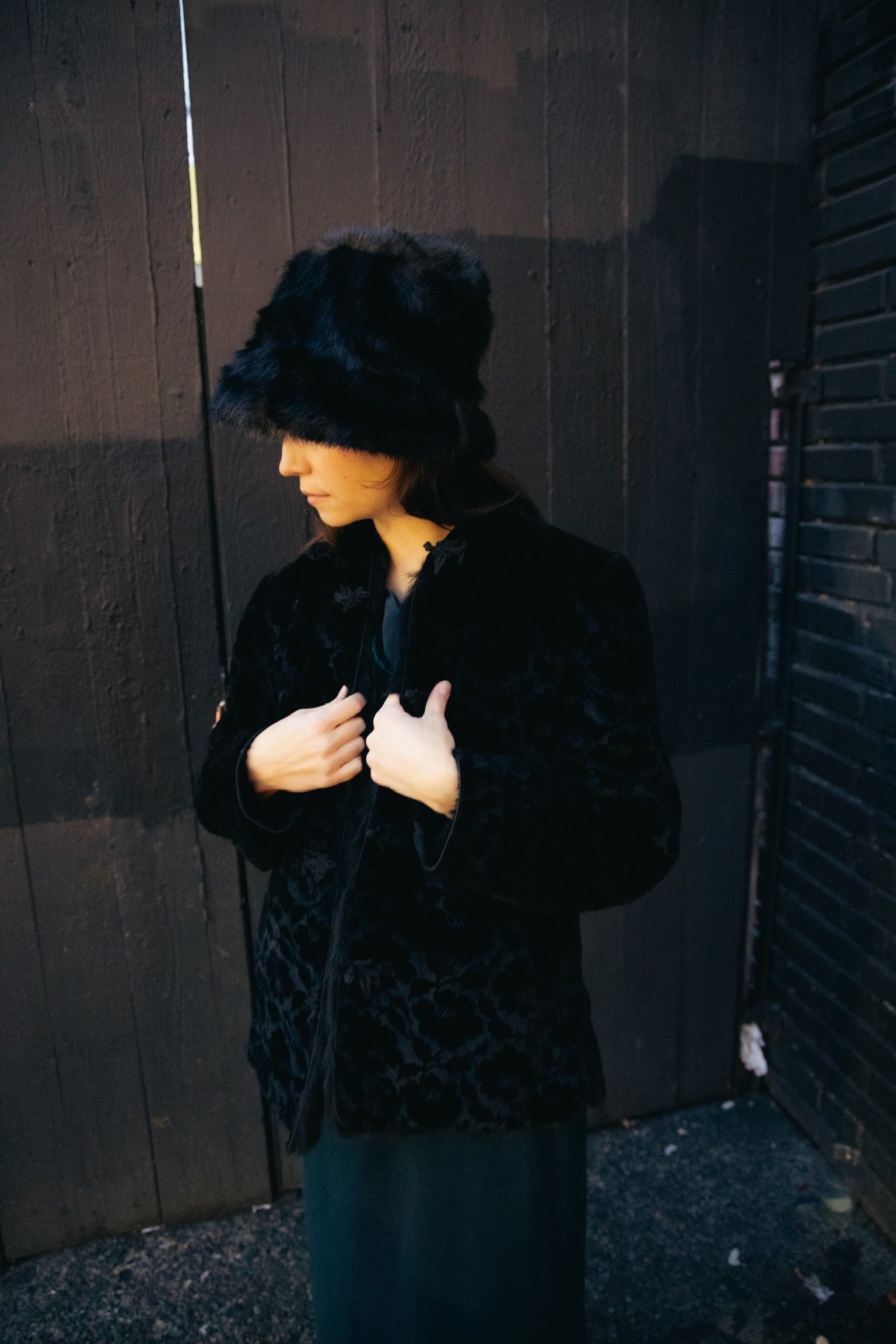 90s Black Fur Lined Coat
