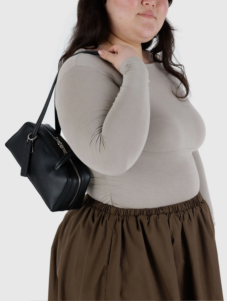 Black Small Recycled Leather Bowler Bag