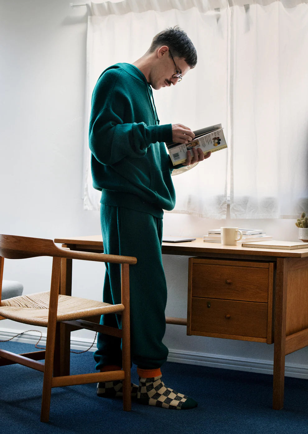 Made entirely of thick and comfortable pile fabric, this toasty room sock comes with a grippy patterned bottom.